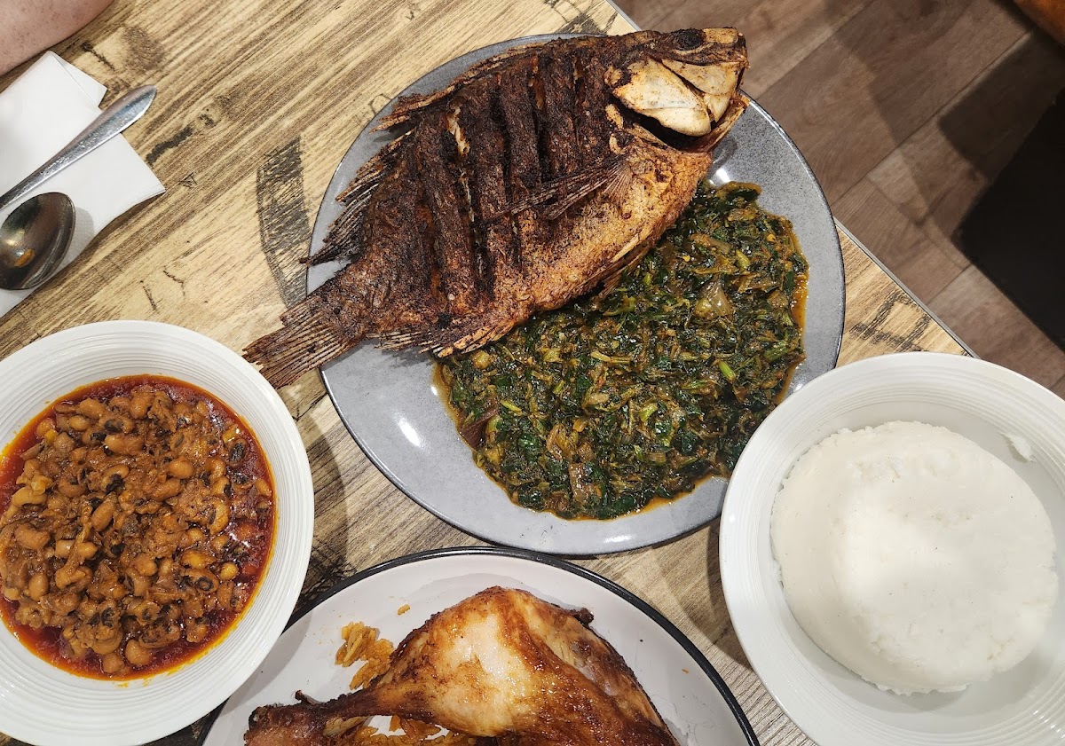 One of the standout dishes at Liba's is the Fried Chicken with Jollof Rice, a combination that has become a favorite among locals. The chicken is perfectly crispy on the outside while remaining tender and juicy on the inside, making it the perfect complement to the flavorful Jollof Rice. For a side of sweetness, Plantains and Puff Puff are also served, delivering that perfect balance of crispy and soft textures.